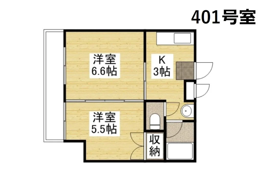 大元【バス・トイレ別】オートロック付 広々2K🎵